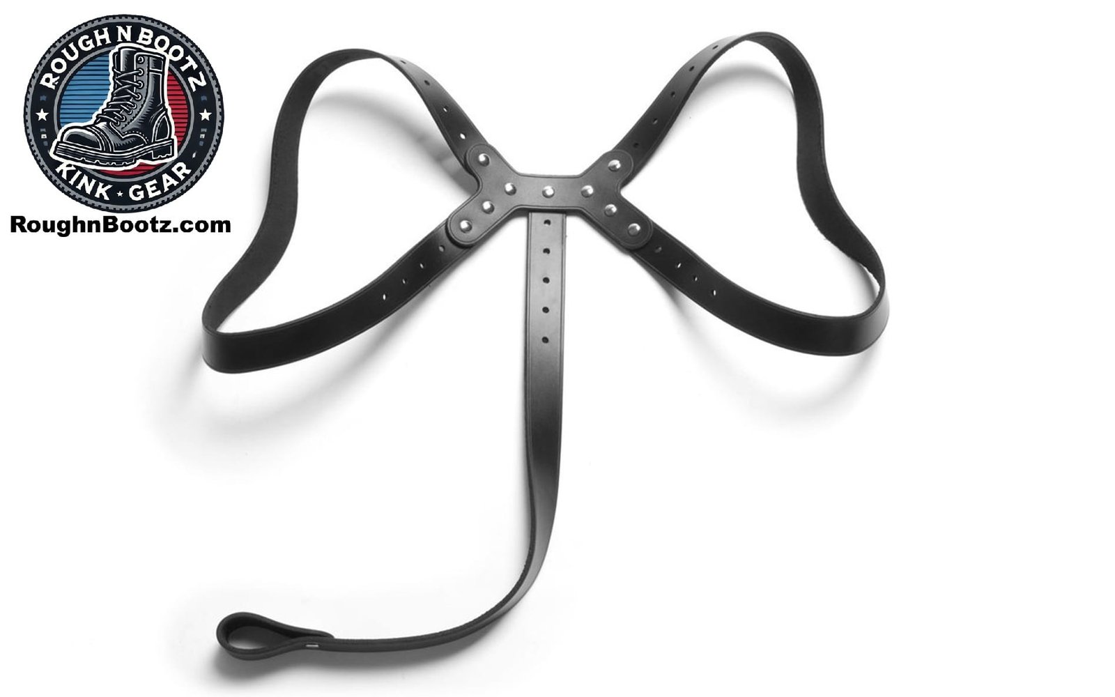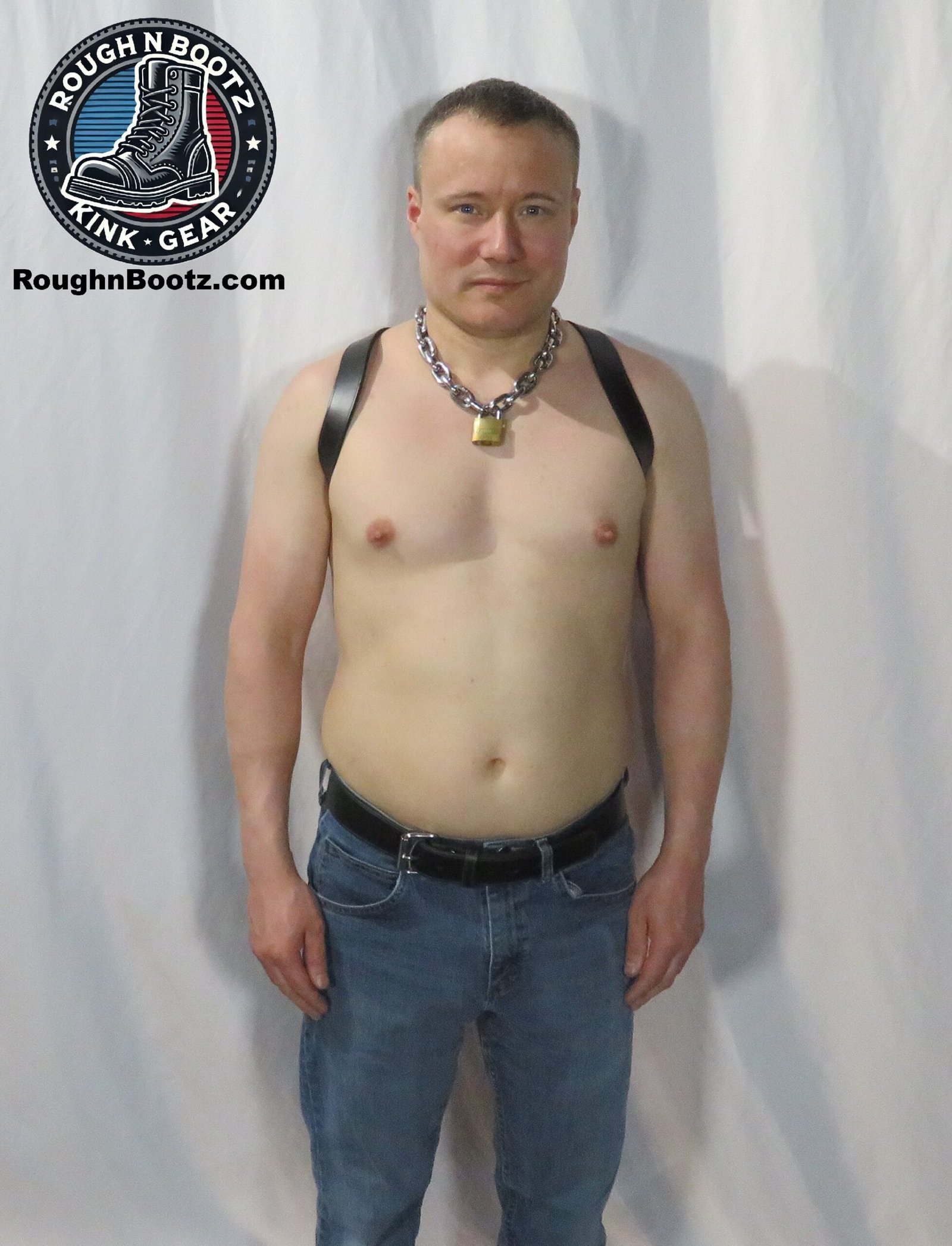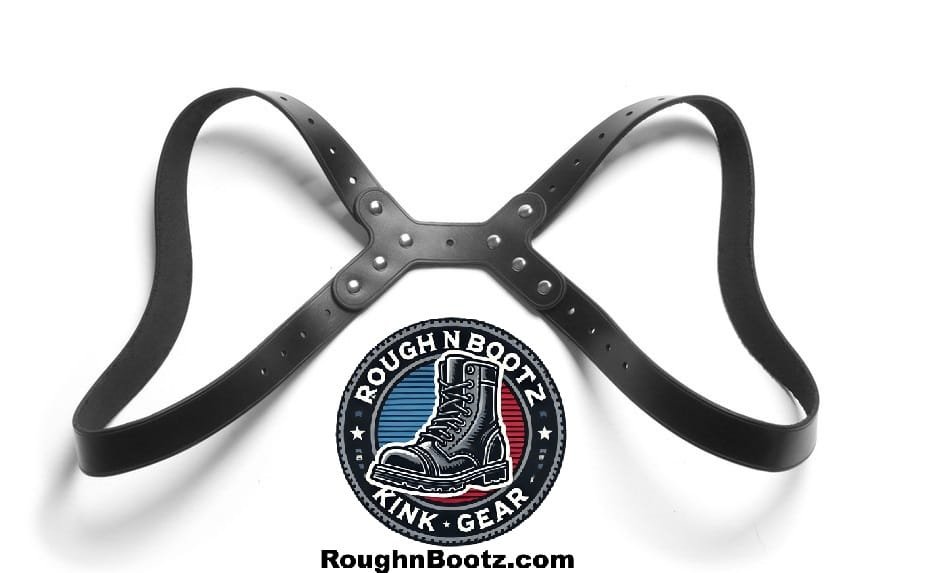 Our Gunslinger harness was designed for a clean but very masculine look. 1.25″ wide latigo leather straps are curved just right to lay flat against your body and stay comfortable all night. Without any buckles or snaps it uses stainless steel Chicago Posts (screw fasteners) for adjustment/fitting (fits XS-XXL). This harness, like all of our harnesses, is designed just as much for wearing out to the bar or event as it is for fucking. The snap-less design will permit for some very rough pulling and thrusting, for years to come. The optional belt strap does use a snap for ease of attaching to your belt. The harness is constructed of sturdy 8-10 ounce black latigo leather. All materials are domestically sourced and gear is handmade in Tacoma, WA.