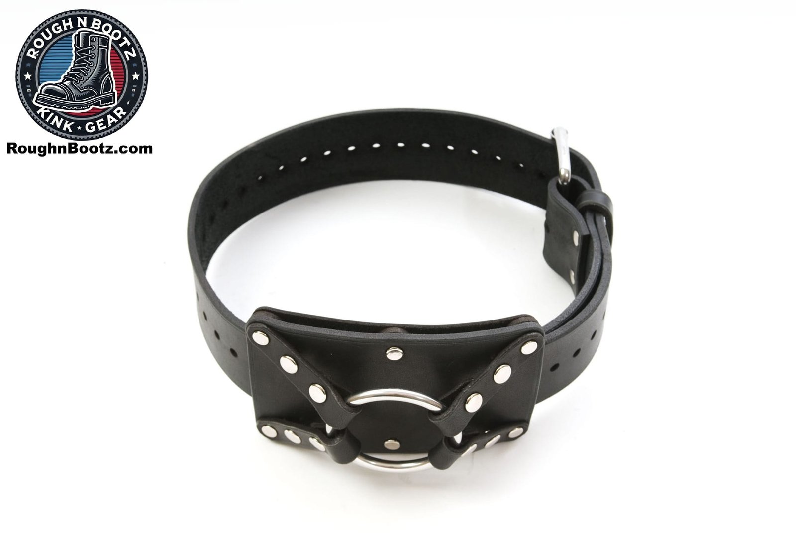 We know some of you like your hole worked wide open and pushed to it’s limit (safely please). So we redesigned our thigh strap-on to accept rings from 1.5-3″ in diameter because we love imagining you crammed full of huge cock and riding it hard. A knee, leg, thigh, arm or even furniture can be a great place to mount a dildo/dong, so we made this extremely adjustable strap-on with that in mind. Made of 10 oz latigo and Stainless Steel hardware. This strap-on has a 3-1/2″” wide body to help spread the thrusting load that slides on a 2″ wide buckle strap with an adjustable circumference of 12-30″. Alternatively, you can use any strap up to 2″ wide to mount this strap-on to various objects. Uses rings 1-1/2″ to 3″ in diameter and comes with four different dildo ring sizes for use with small to very large dildos: 1-1/2″, 1-3/4″, 2″ and 2-1/4″ (inner diameter) in rubber for comfort and 2″ in stainless steel for all the hard pounding you can dish out (or take). You must supply rings between 2-1/2″ to 3″ if needed.