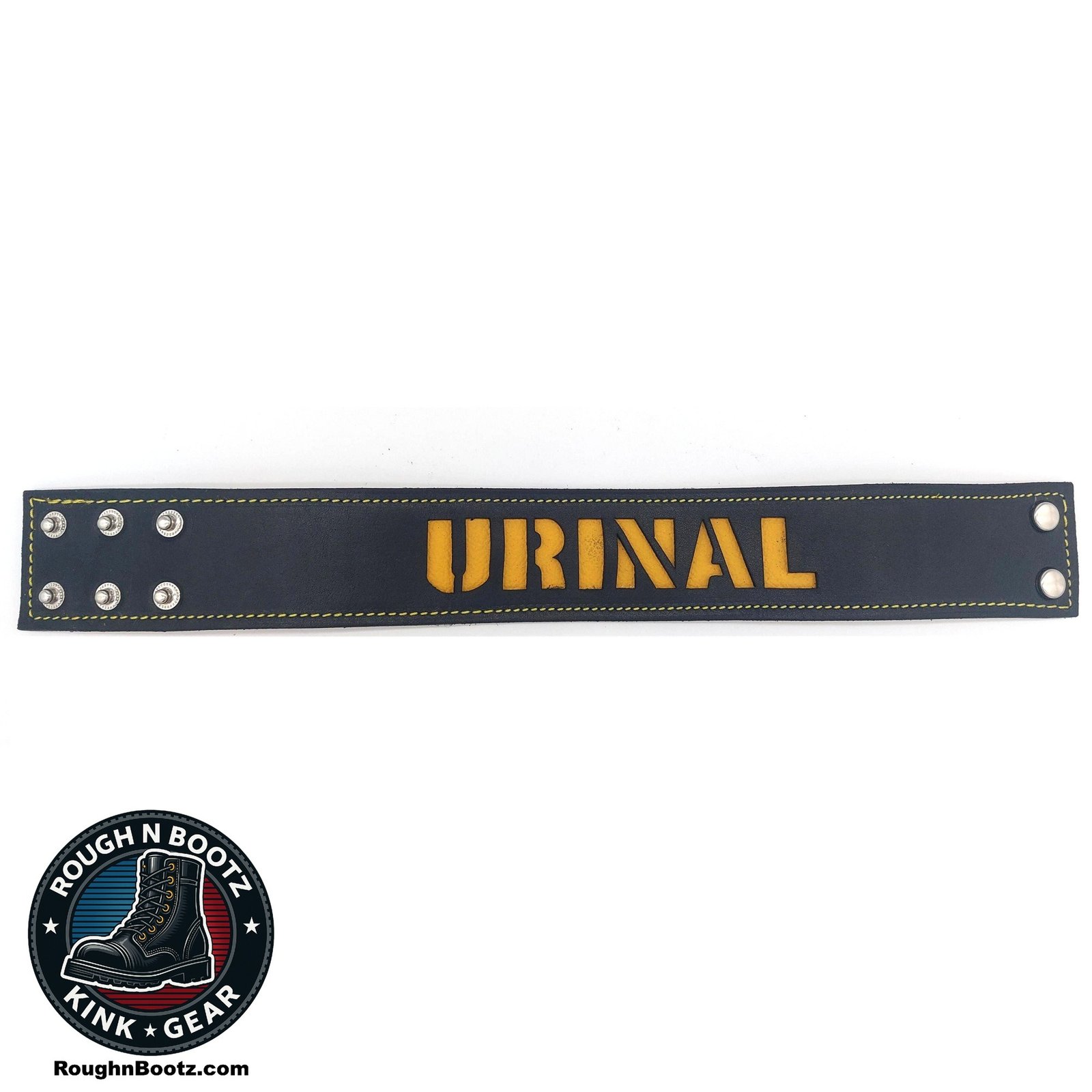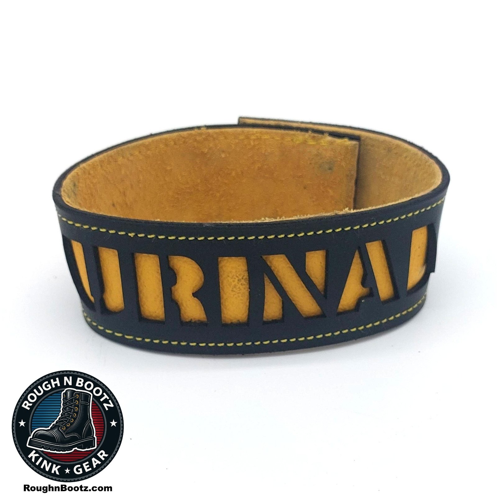 The arm band is constructed with a black latigo leather exterior and a soft suede backing, and yellow nylon stitching. The suede layer keeps metal hardware off the skin, improving all-day comfort while reducing corrosion and potential skin reactions.